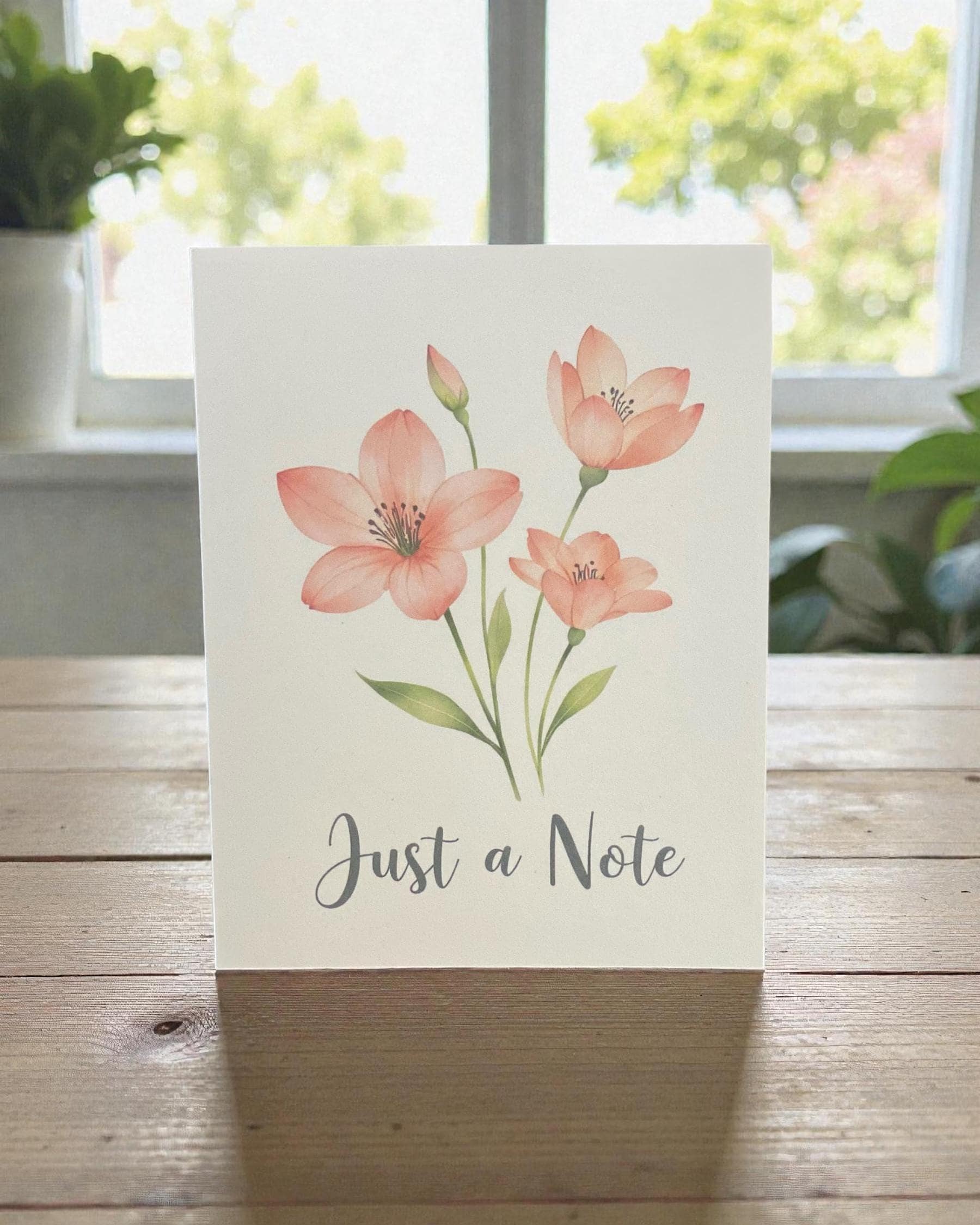 Just a Note Card Set – Pink Floral Design, Blank Inside, Pack of 4/8/12