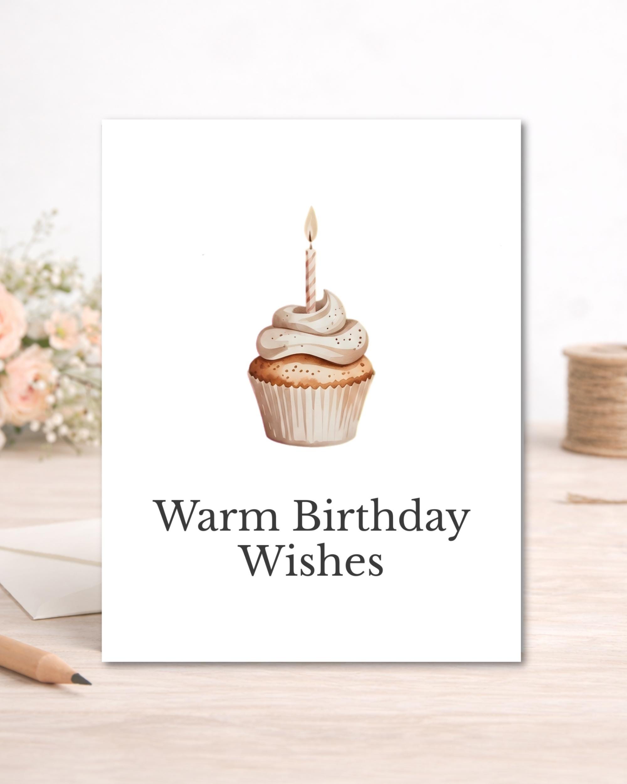 This minimalist birthday card features a soft watercolor cupcake and elegant typography, making it perfect for coworkers, teams, managers, and office settings.