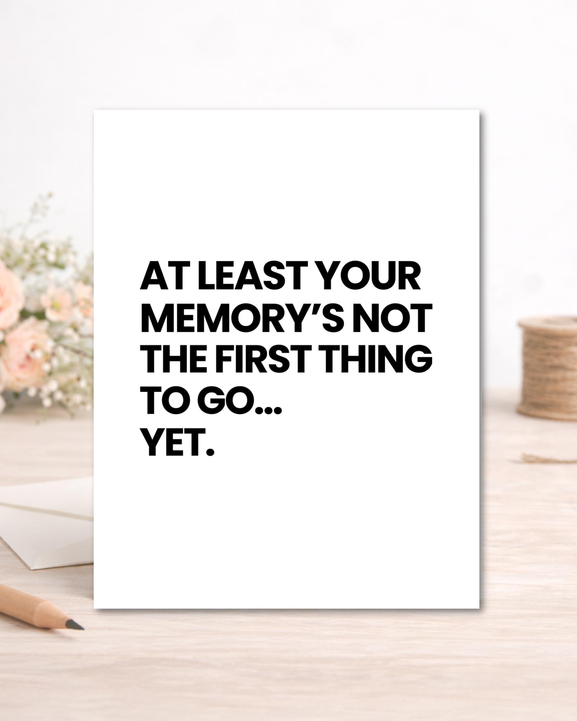 Funny Birthday Card for Friend – Aging Memory Joke – Minimalist Humor Card – Blank Inside – White Envelope Included – A2 Size