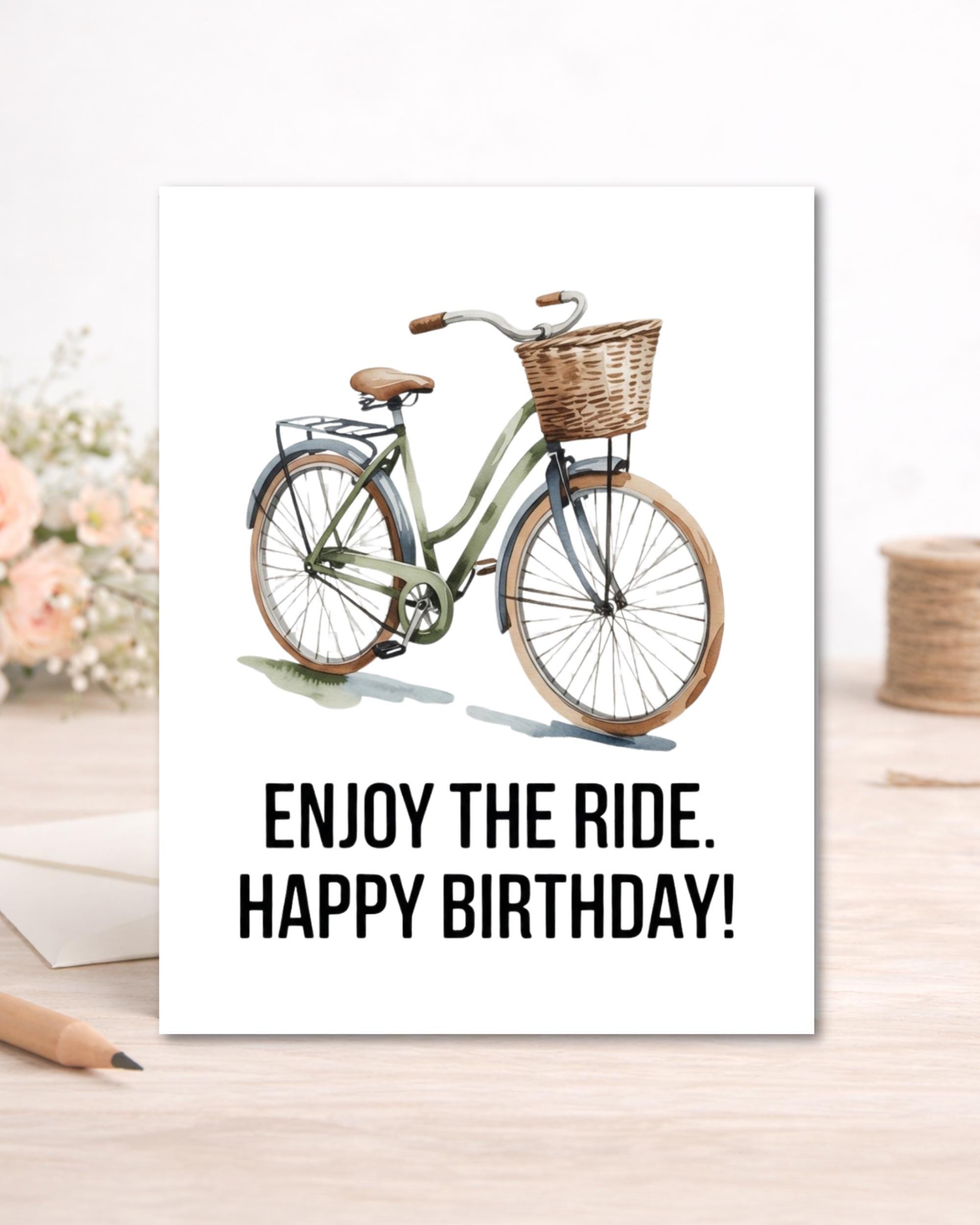 Enjoy the Ride Birthday Card – Bicycle Birthday Greeting Card
